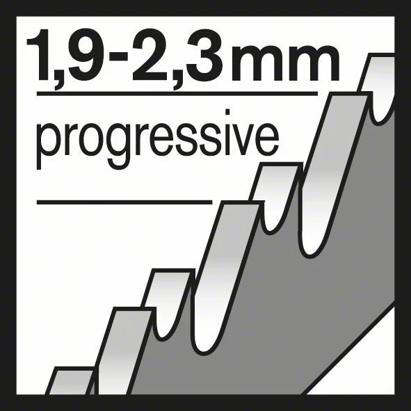 Das T 118 B Basic for Metal Stichsägeblatt macht gerade Schnitte in Metall. Die gefrästen, gewellten Zähne sind ideal für Schnitte ohne besondere Anforderungen. Das Blatt aus hochwertigem gehärtetem Hochgeschwindigkeitsstahl ist zum Schneiden von nicht perforierten Metallblechen mit Standard-Stärke geeignet. Die feine Zahnteilung des Blatts (1,9-2,3 mm) ermöglicht es, eine Vielzahl an mittelstarken Metallblechen mit einer Dicke von 2,5-6 mm zu schneiden.