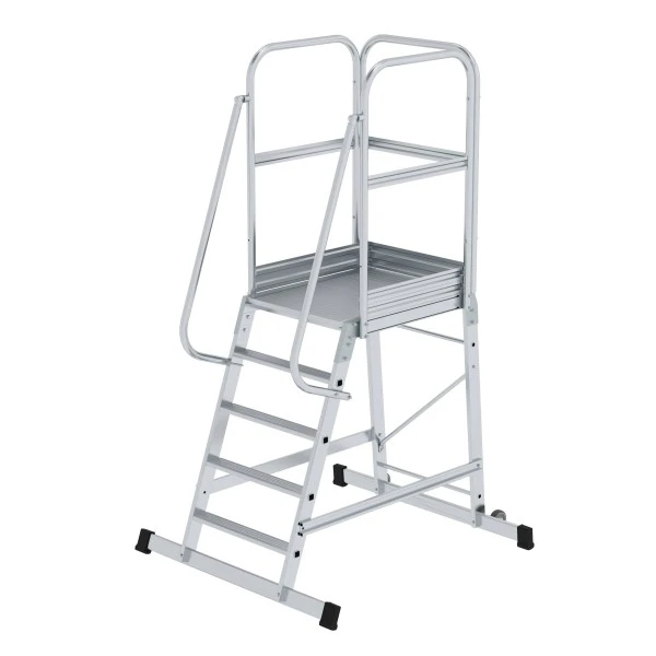 Dreiseitiges Plattformgeländer 1100 mm mit Fuß- und Knieleisten sowie beidseitige Handläufe serienmäßig,