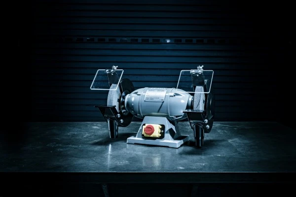 • Grobe (K36) und feine (K60) Korund-Schleifscheibe für alle Schleif- und Schärfarbeiten