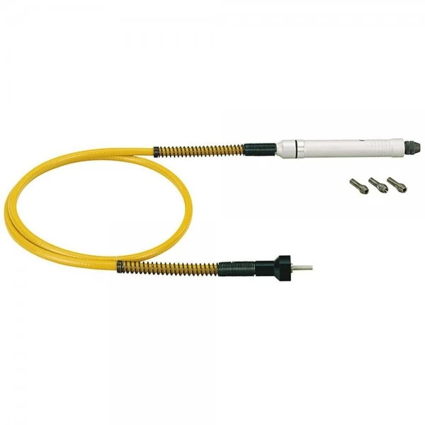 Doppelt kugelgelagerte, geschliffene Stahlwelle mit Aufnahme für MICROMOT-Stahlspannzangen. Kugelgelagertes Schaftende maschinenseitig. Hochflexible Seele (kein Heißlaufen bei engen Radien). Länge 100 cm. Für maximal 25.000/min. Zum Lieferumfang gehören 6 Stahlspannzangen (1,0 – 1,5 – 2,0 – 2,4 – 3,0 und 3,2 mm).