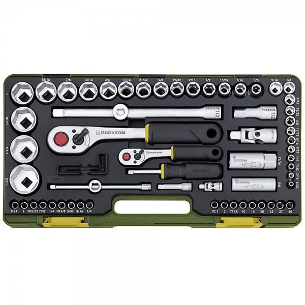Proxxon Steckschlüsselsatz für zöllige Schraubengrößen 65-tlg., No 23 294