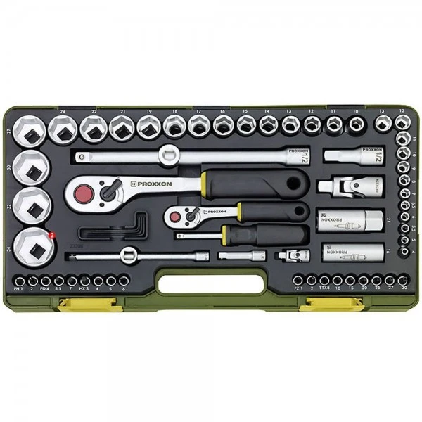 Proxxon Steckschlüsselsatz mit Knüppelratschen 1/4″ und 1/2″, 65-tlg., No 23 286