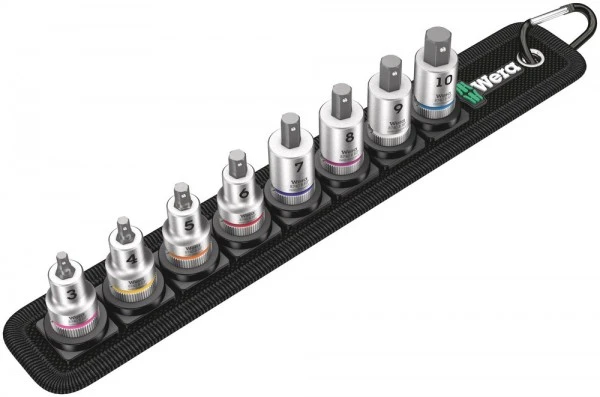 – 8-teilig; robuster Textilgurt, inklusive Karabinerhaken zur Befestigung an Gürtelschlaufen oder Taschen. Vliesrücken und Klettklebestreifen zur einfachen Befestigung z. B. an Wand, Regal, Werkstattwagen und Wera 2go Werkzeugtransportsystem. Leichtgängiger Drehmechanismus für sichere Aufbewahrung und einfache Entnahme des Werkzeugs. 8 Zyklop-Bitnüsse mit 3/8″-Antrieb für Innensechskantschrauben, mit Haltefunktion. Take it easy Werkzeugfinder: Mit Abtrieb-Farbkennzeichung und Größenstempel für einfaches Finden der gewünschten Bitnuss.